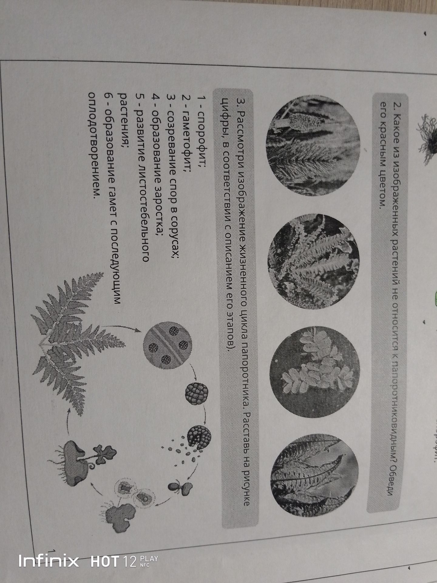 Ответ: Цифры расставлены на изображении в соответствии с описанием этапов жизненного цикла папоротника.