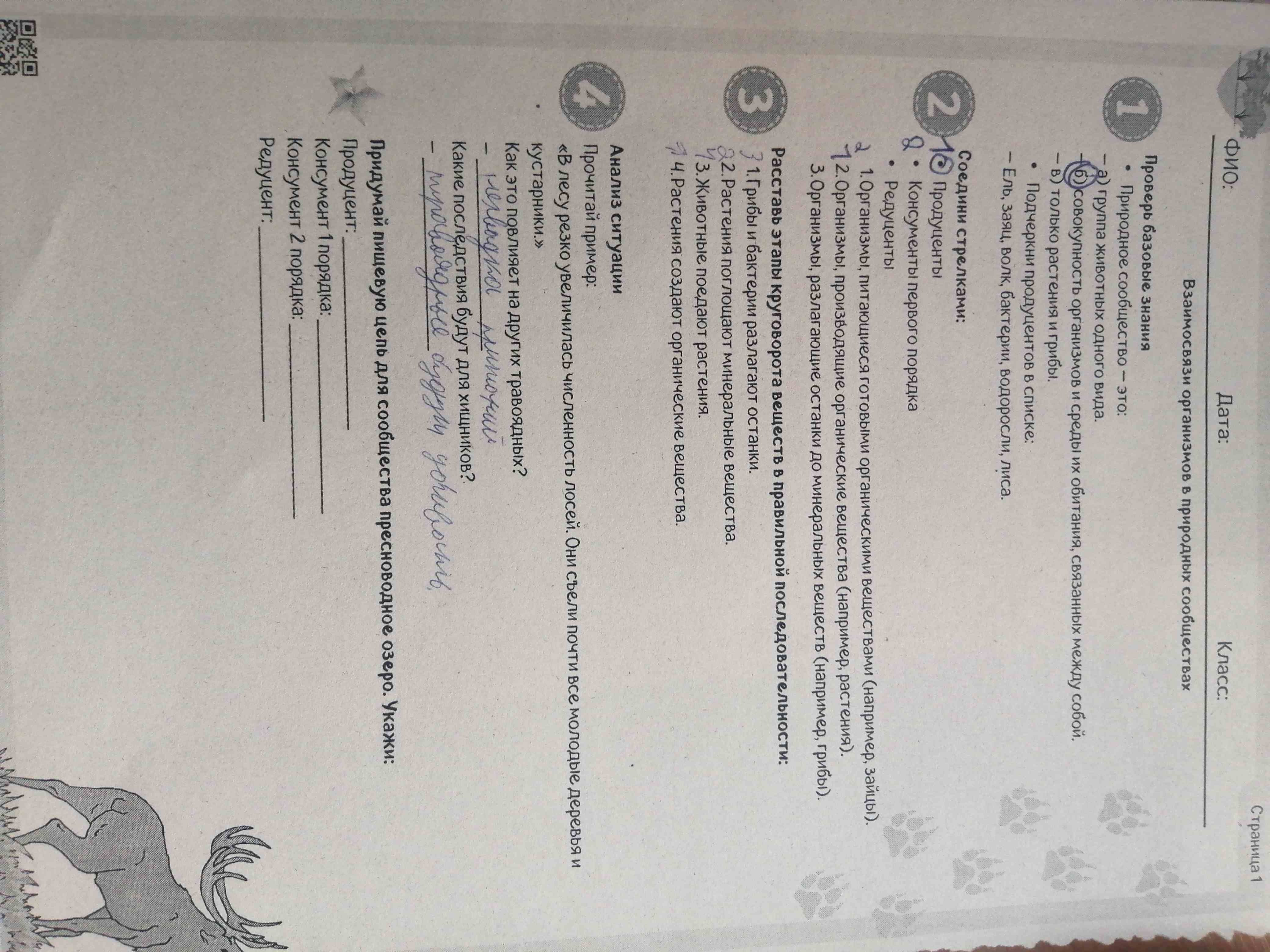 4. Анализ ситуации. Прочитай пример: «В лесу резко увеличилась численность лосей. Они съели почти все молодые деревья и кустарники.» Как это повлияет на других травоядных?