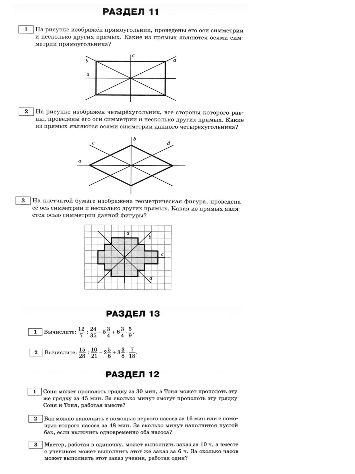 1. На рисунке изображён прямоугольник, проведены его оси симметрии и несколько других прямых. Какие из прямых являются осями симметрии прямоугольника?