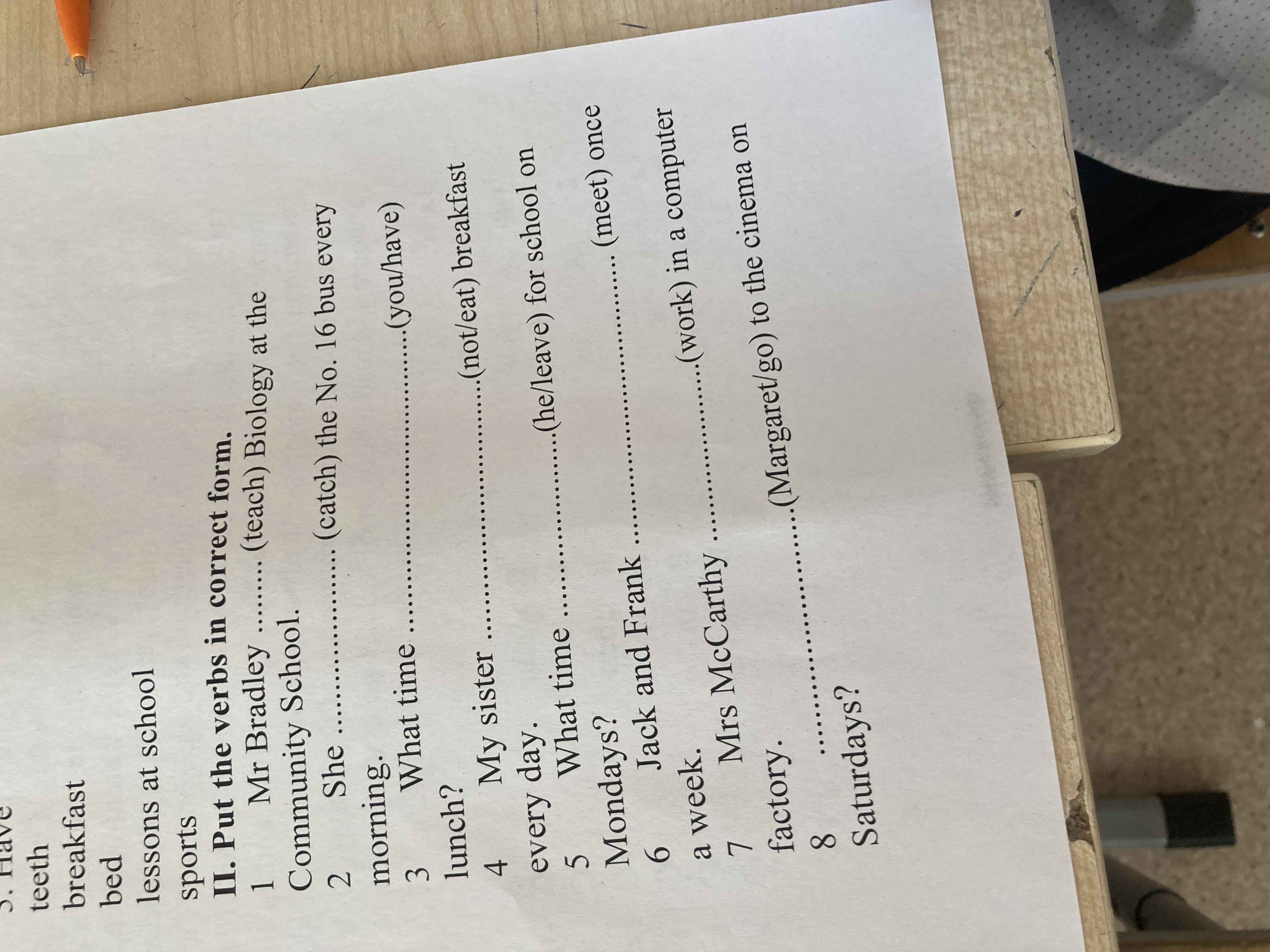 II. Put the verbs in correct form. 1 Mr Bradley ....... (teach) Biology at the Community School.