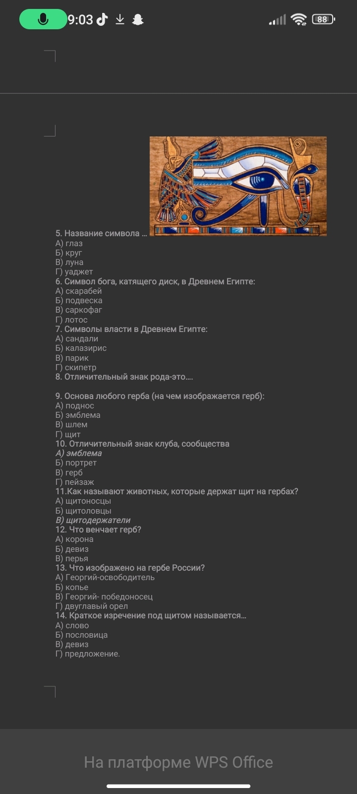 А) скарабей Объяснение: Скарабей был символом бога Хепри, который каждое утро катил солнце по небу, подобно скарабею, катящему навозный шарик.
