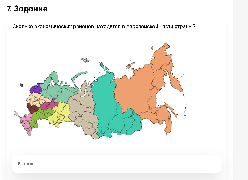 Контрольные задания > Сколько экономических районов находится в европейской части страны?