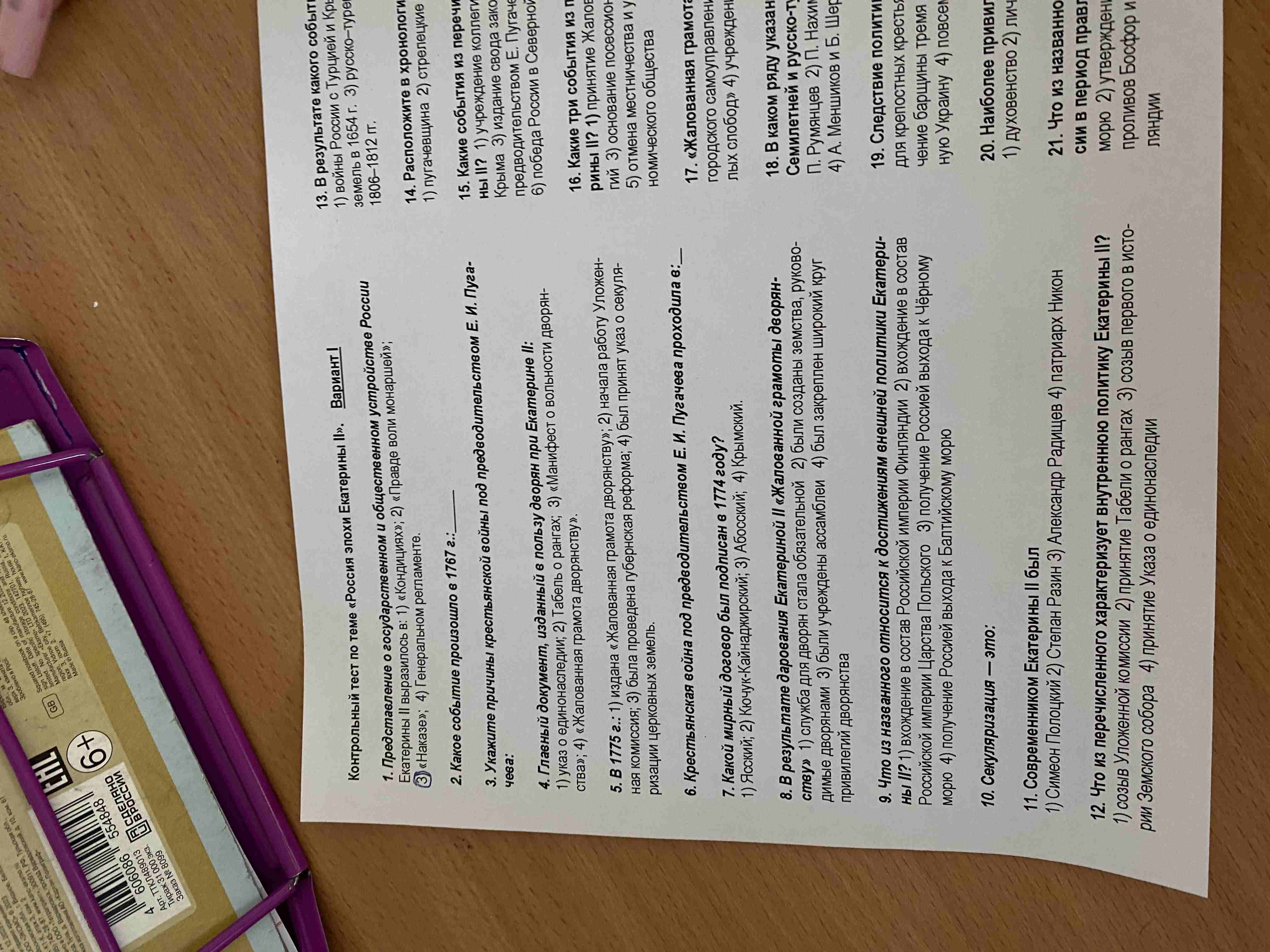 Контрольные задания > 19. Следствие политики Екатерины II в отношении крестьян: 1) улучшение положения для крепостных крестьян; 2) распространение крепостного права на новые территории; 3) увеличение барщины тремя днями в неделю; 4) повсеместное освобождение Украины