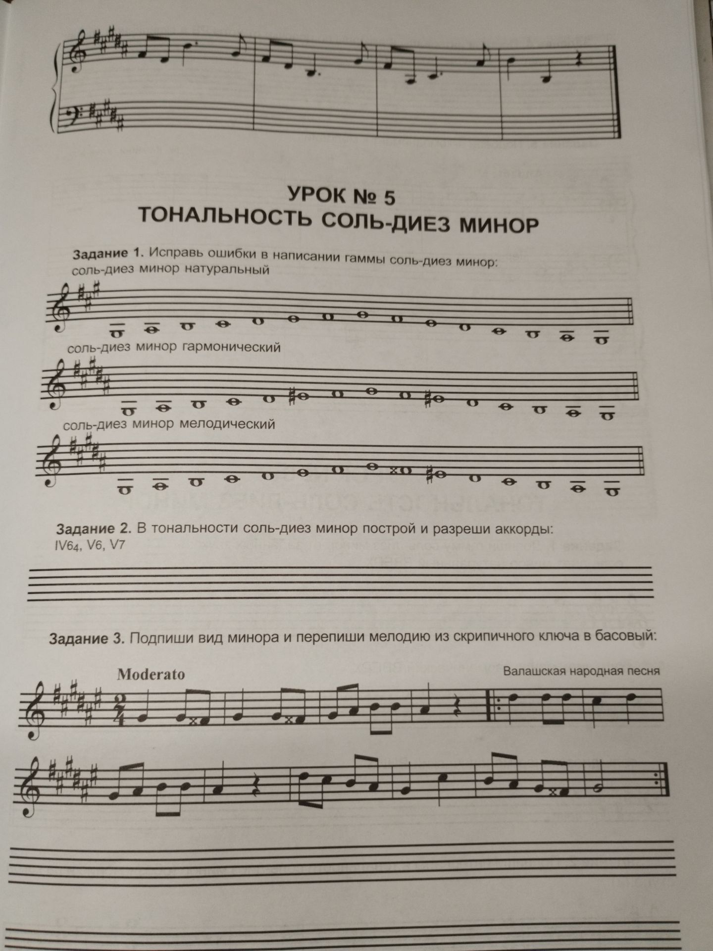 Ответ: Проверить наличие фа-дубль-диеза и правильность написания гаммы соль-диез минор гармонический.