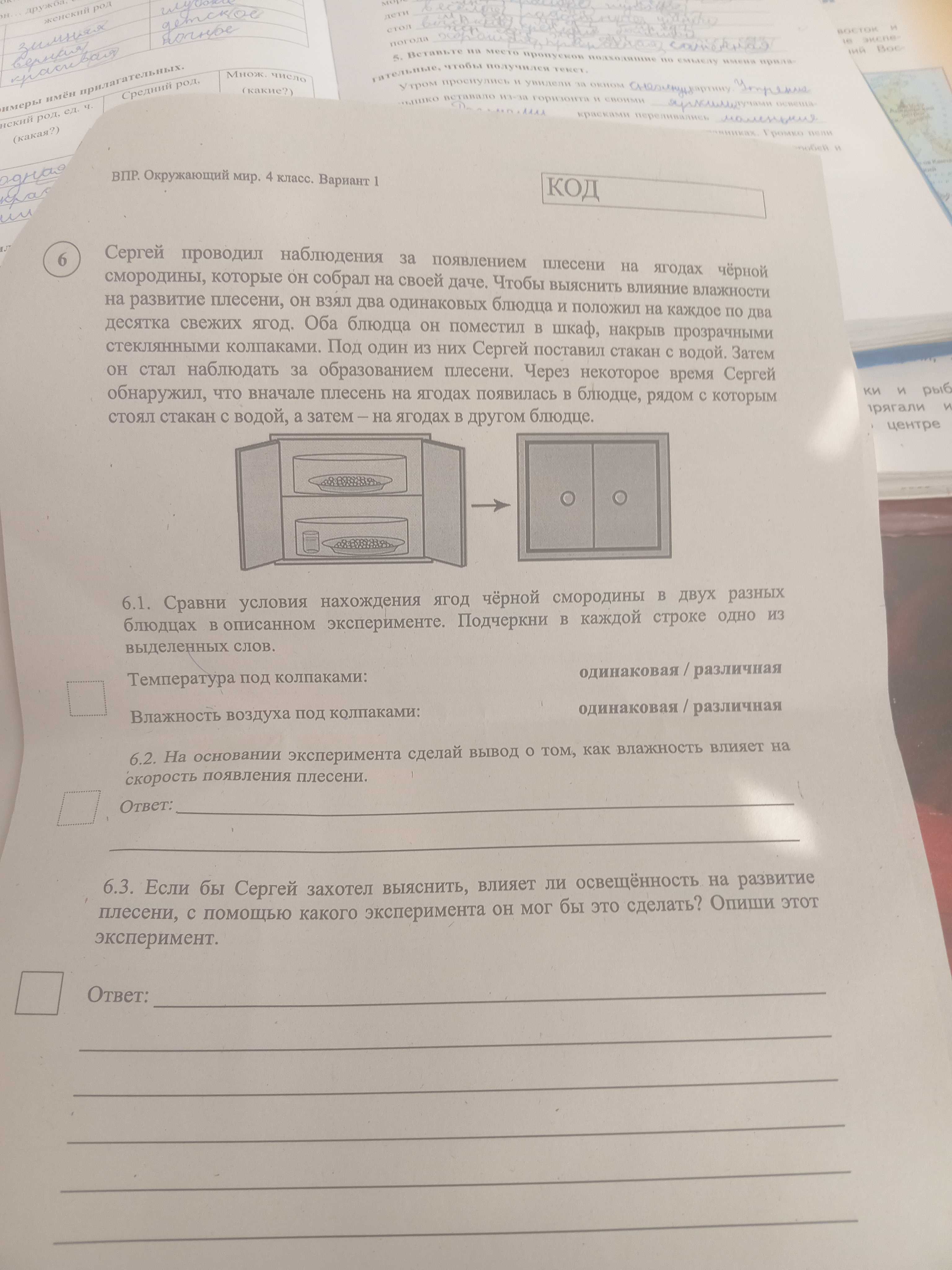 6.1. Сравни условия нахождения ягод чёрной смородины в двух разных блюдцах в описанном эксперименте. Подчеркни в каждой строке одно из выделенных слов.
