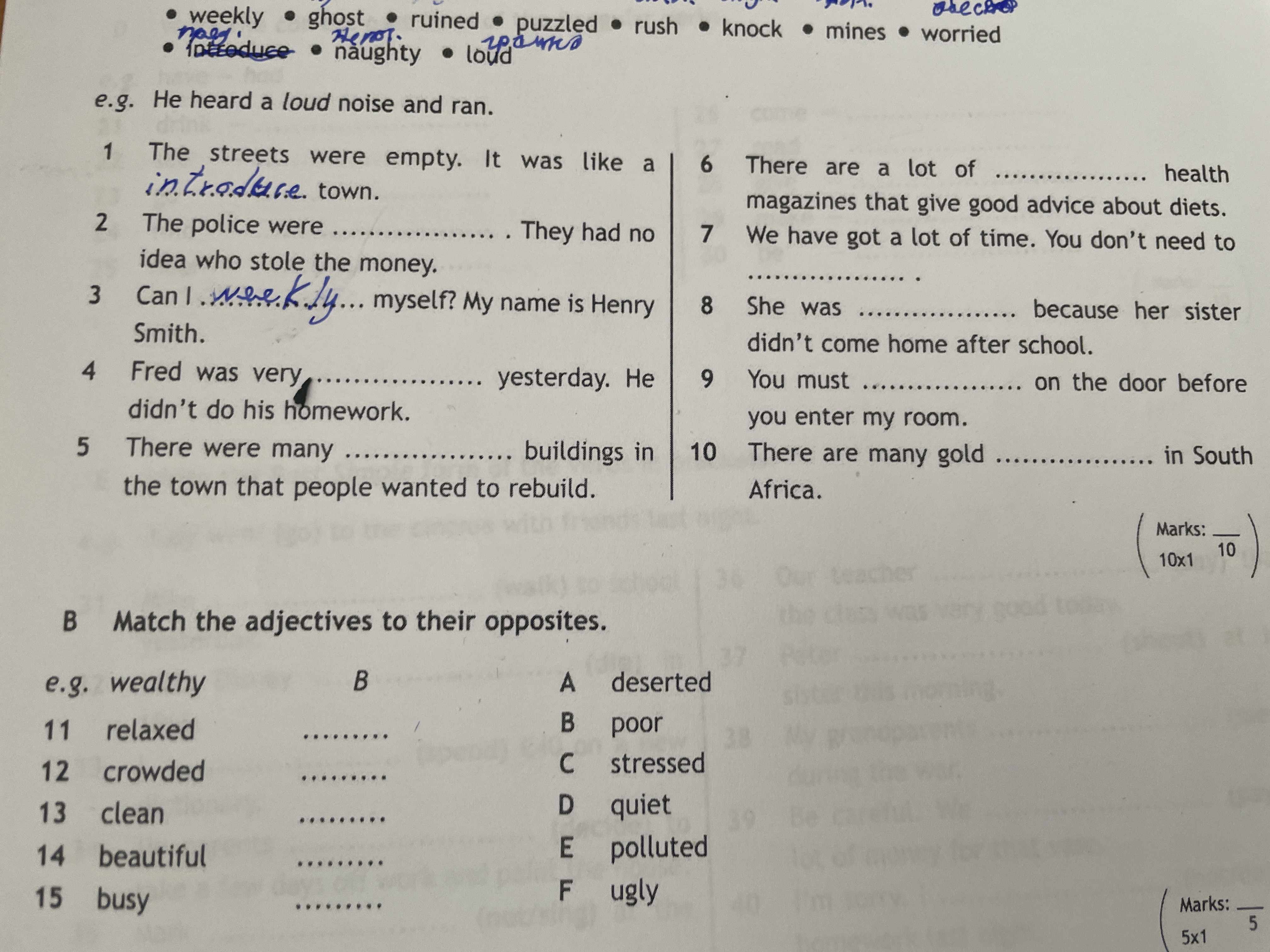 4. Fred was very _______ yesterday. He didn't do his homework.
