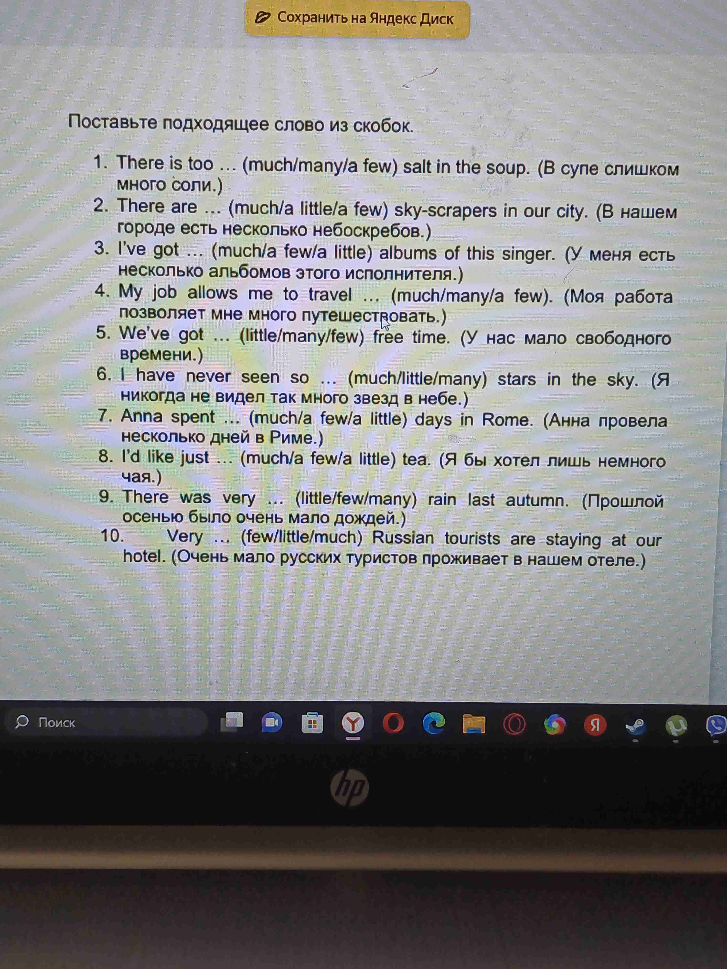 Контрольные задания > 1. There is too ... (much/many/a few) salt in the soup. (В супе слишком много соли.)