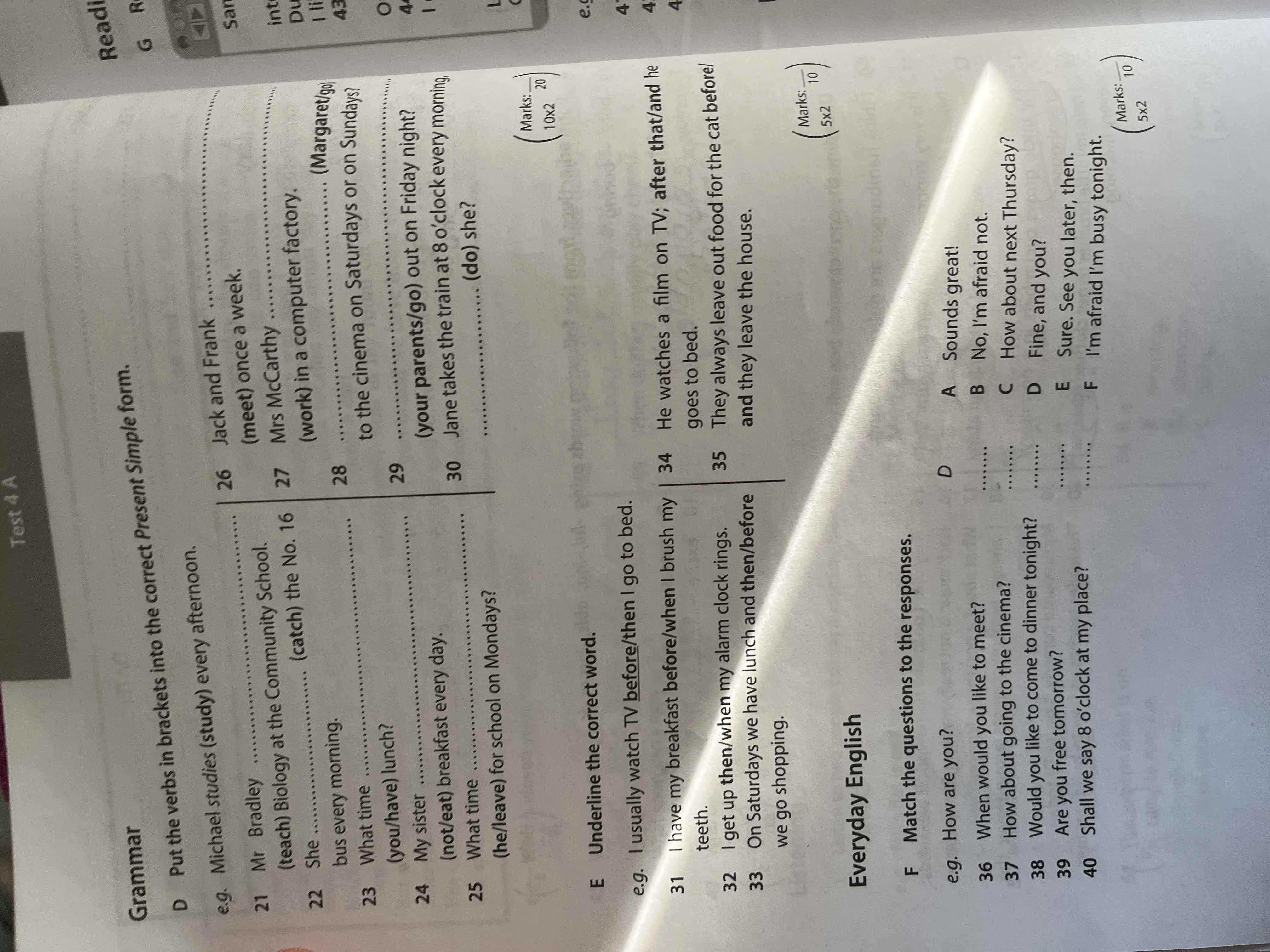 28 .................... (Margaret/go) to the cinema on Saturdays or on Sundays?
