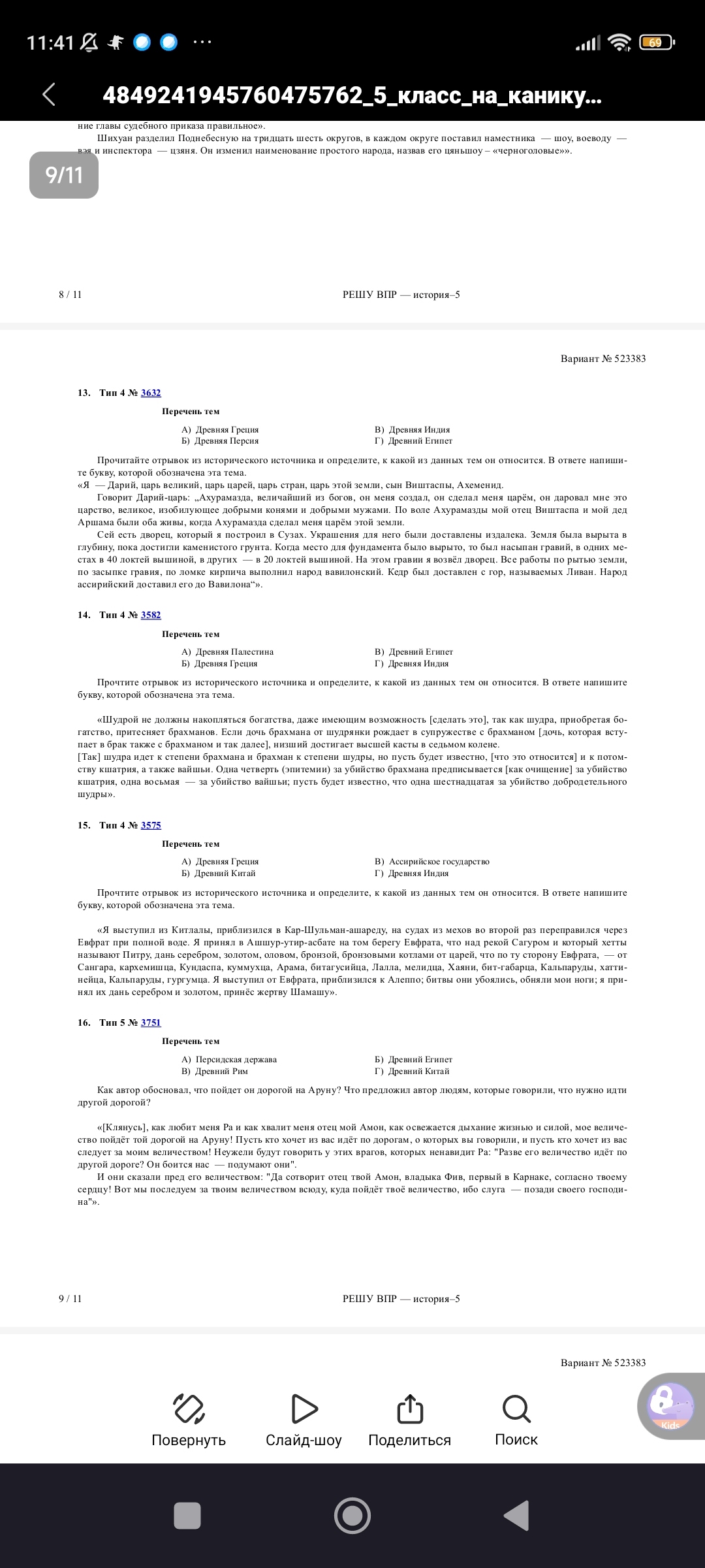 16. Тип 5 № 3751. Перечень тем: А) Персидская держава, Б) Древний Египет, В) Древний Рим, Г) Древний Китай. Как автор обосновал, что пойдет он дорогой на Аруну? Что предложил автор людям, которые говорили, что нужно идти другой дорогой? "[Клянусь], как любит меня Ра и как хвалит меня отец мой Амон, как освежается дыхание жизнью и силой, мое величество пойдёт той дорогой на Аруну! Пусть кто хочет из вас идёт по дорогам, о которых вы говорили, и пусть кто хочет из вас следует за моим величеством! Неужели будут говорить у этих врагов, которых ненавидит Ра: "Разве его величество идёт по другой дороге? Он боится нас подумают они". И они сказали пред его величеством: "Да сотворит отец твой Амон, владыка Фив, первый в Карнаке, согласно твоему сердцу! Вот мы последуем за твоим величеством всюду, куда пойдёт твоё величество, ибо слуга позади своего господина“."