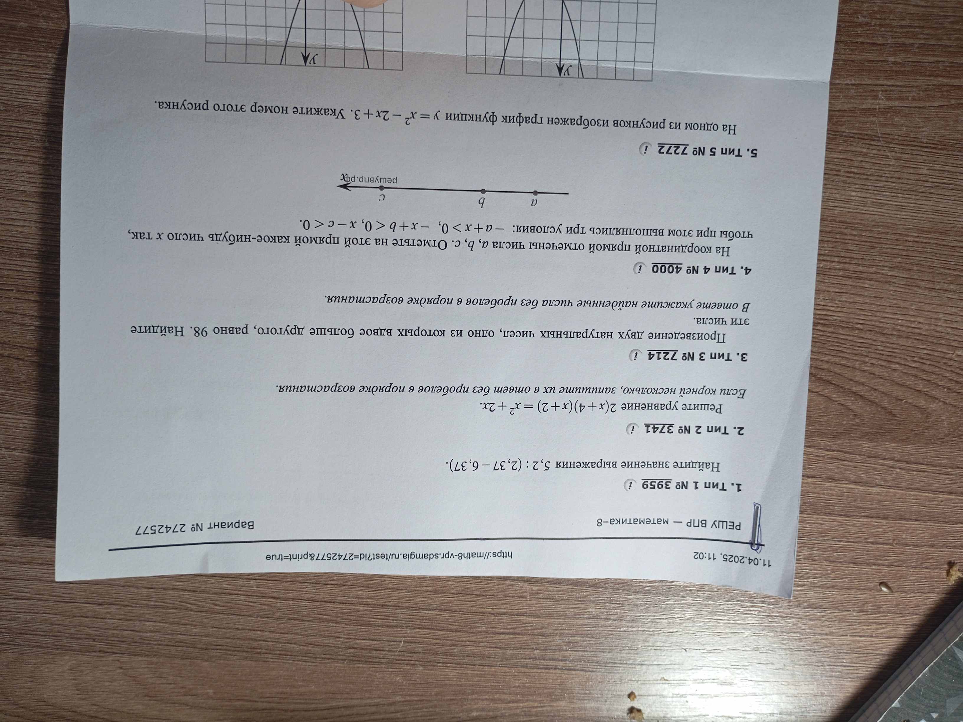 Найдем вершину параболы. Координата x вершины находится по формуле: