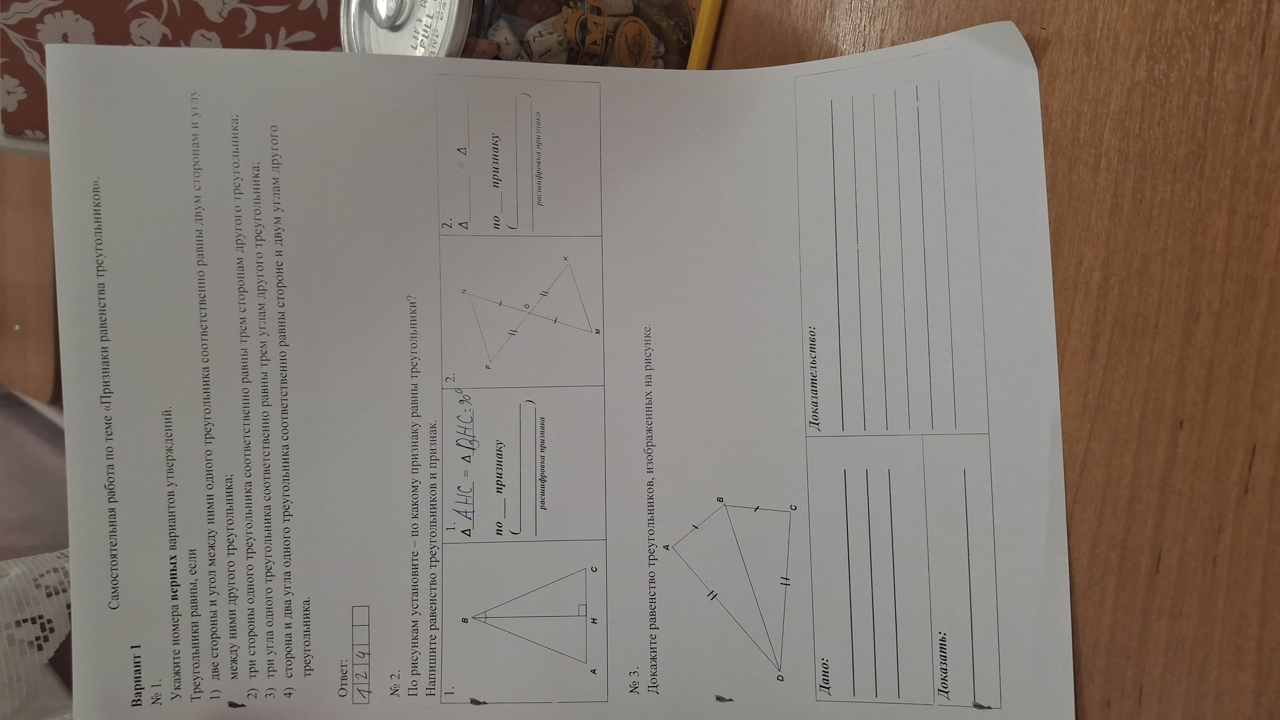 4) сторона и два угла одного треугольника соответственно равны стороне и двум углам другого треугольника.