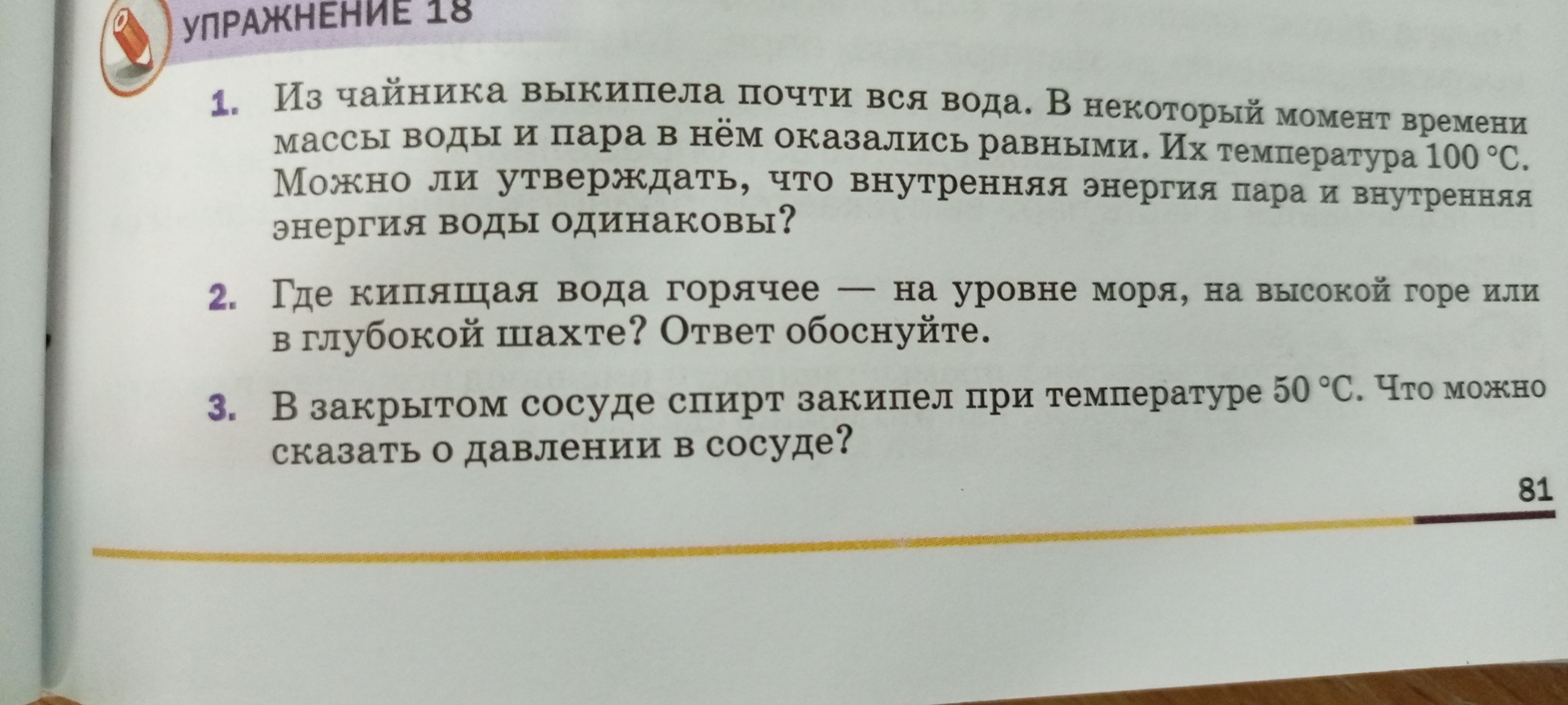 3. Если спирт закипел в закрытом сосуде при температуре 50 °С, это означает, что давление в сосуде ниже нормального атмосферного давления. Обычно спирт кипит при температуре около 78 °С при нормальном атмосферном давлении.