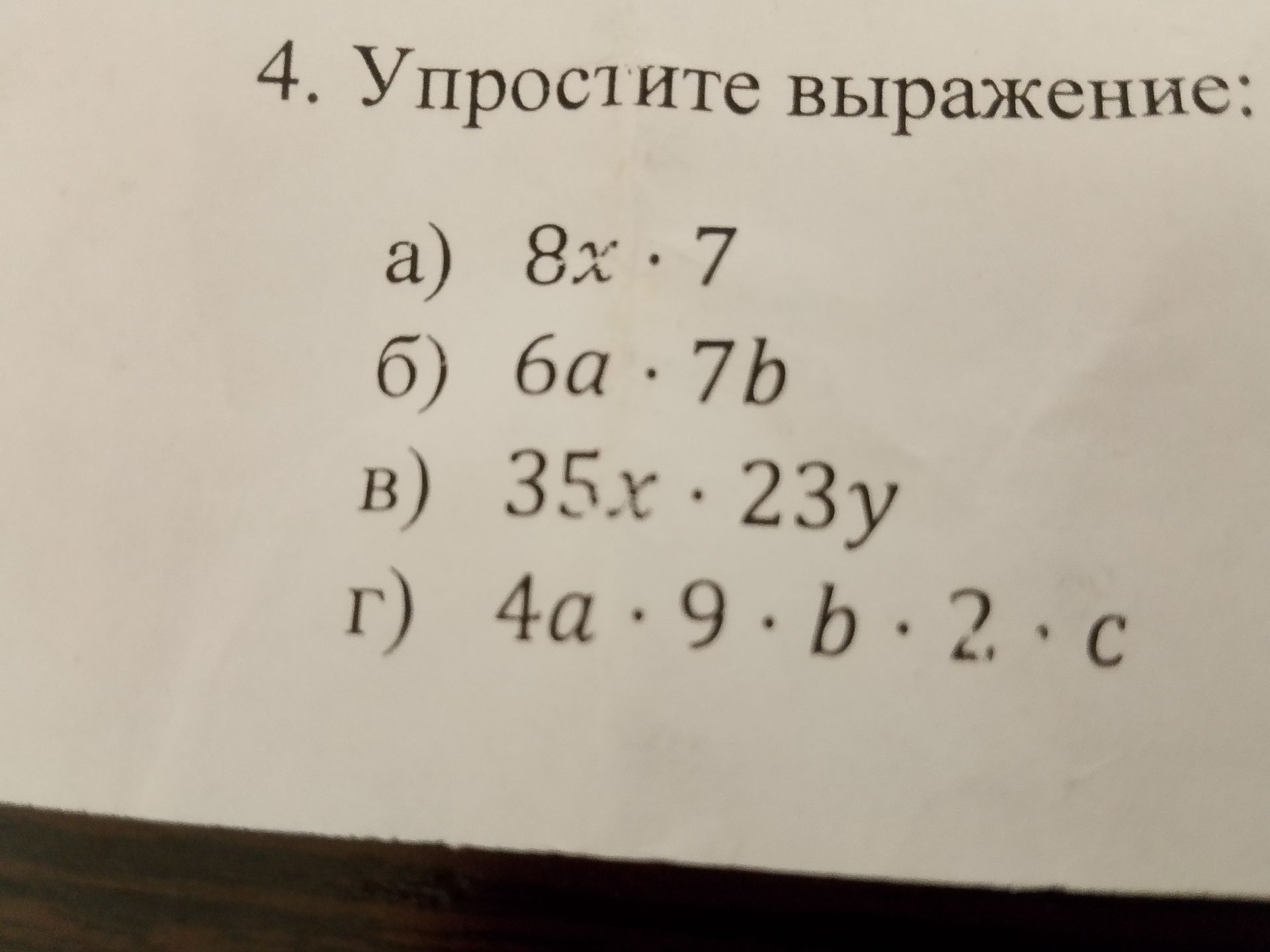 - б) $$6a \cdot 7b = 6 \cdot 7 \cdot a \cdot b = 42ab$$