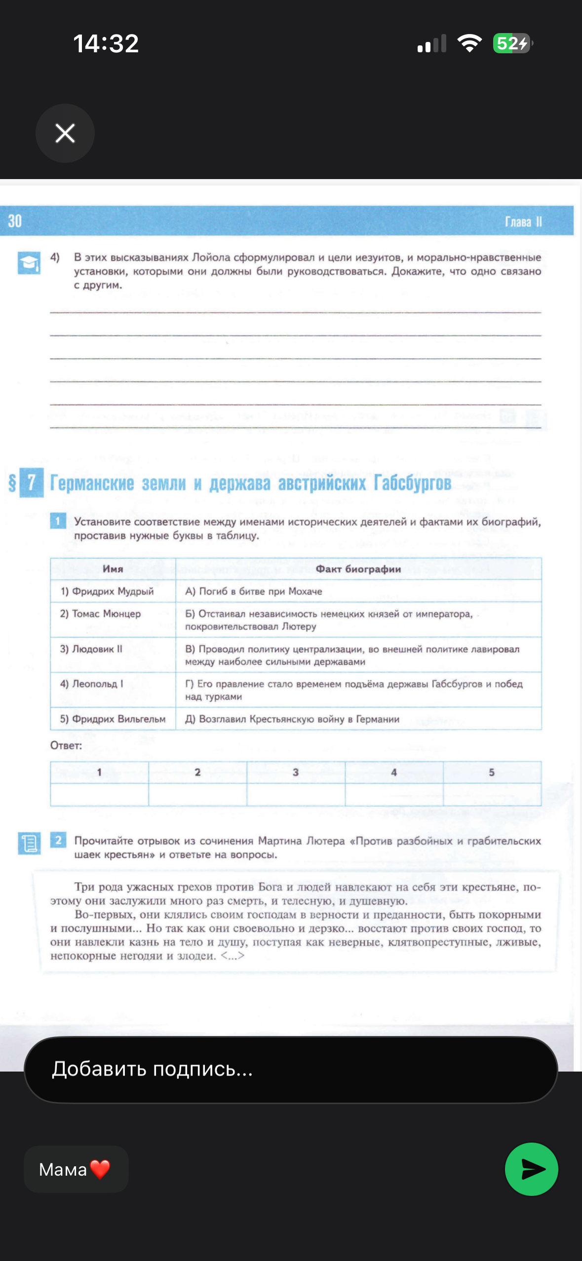 | 2) Томас Мюнцер | Д) Возглавил Крестьянскую войну в Германии |