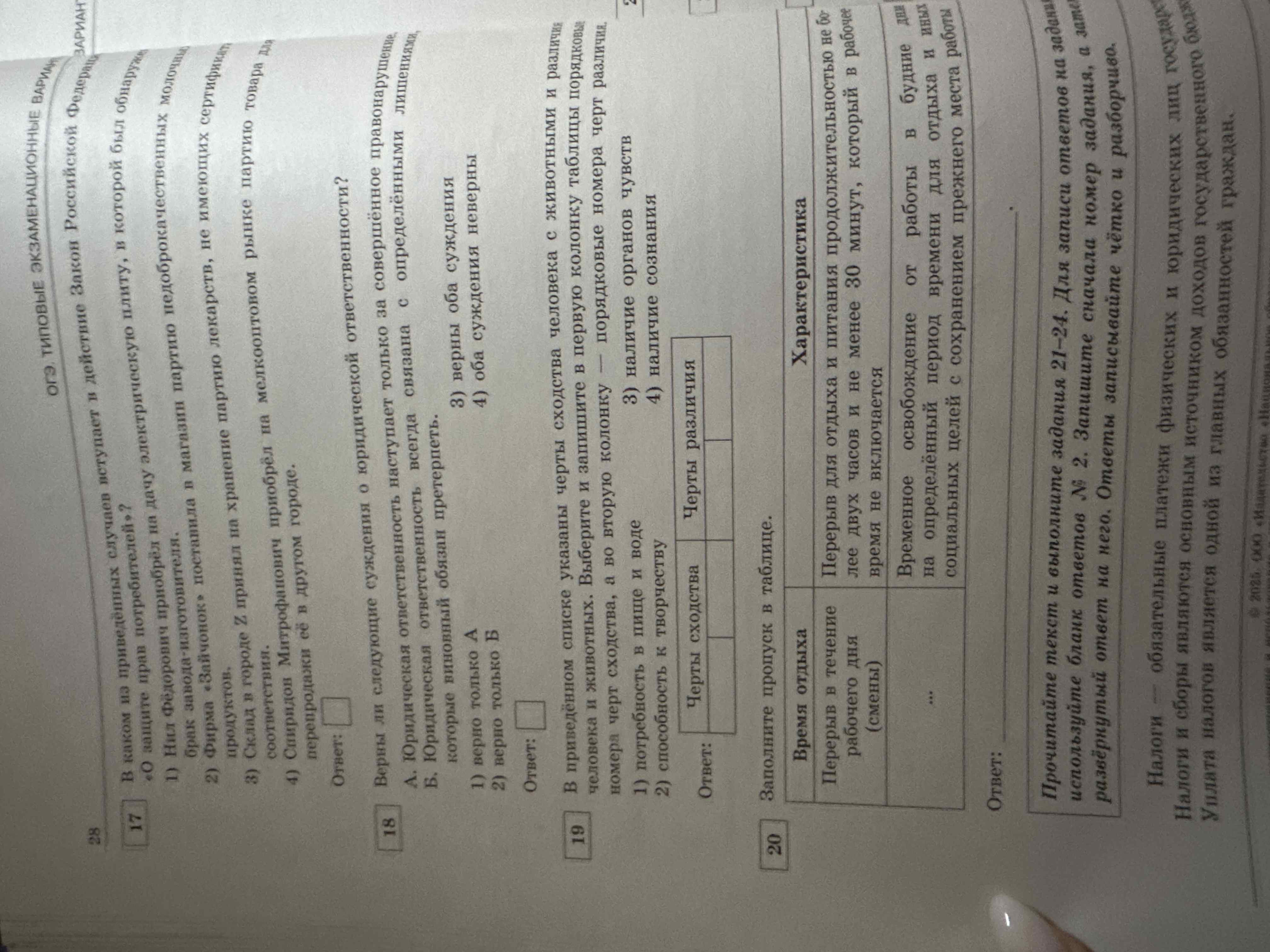 Ответ: Черты сходства: 1, 3; Черты различия: 2, 4