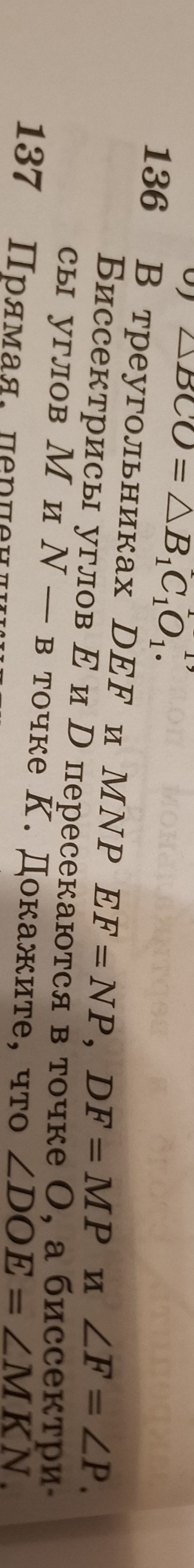 136 В треугольниках DEF и MNP EF=NP, DF = MP и ∠F = ∠P.