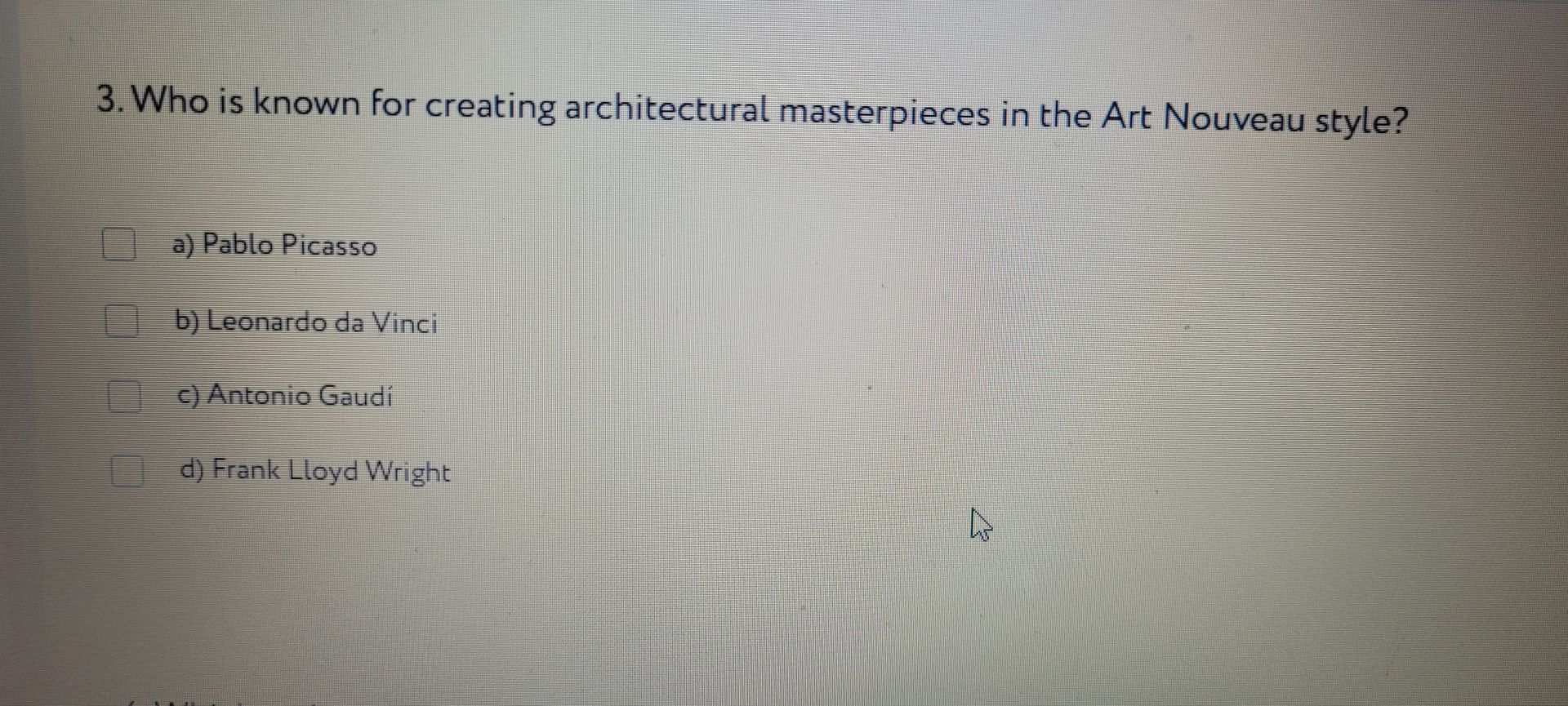Контрольные задания > 3. Who is known for creating architectural masterpieces in the Art Nouveau style?