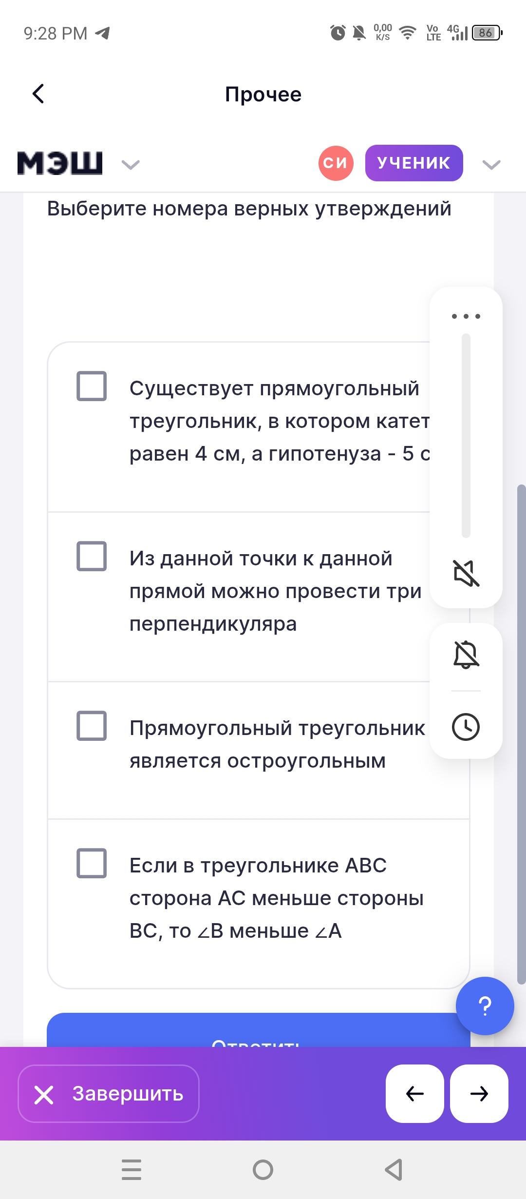 Существует ли прямоугольный треугольник с катетом 4 см и гипотенузой 5 см?