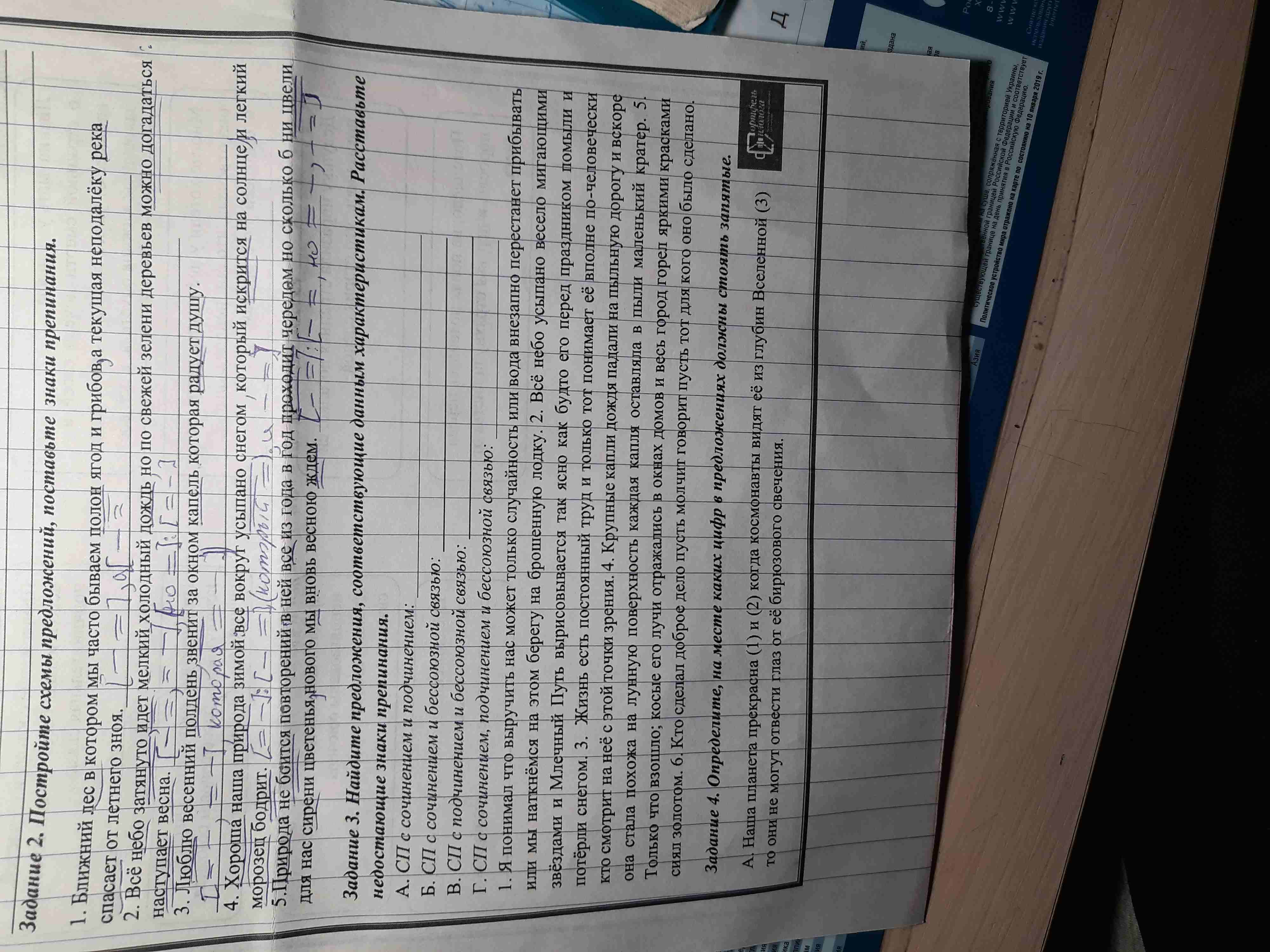 Задание 4. Определите, на месте каких цифр в предложениях должны стоять запятые.