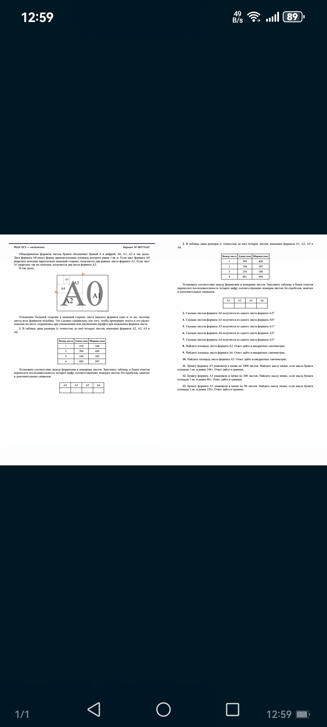 Контрольные задания > Задание 5: Сколько листов формата A5 получится из одного листа формата A1?