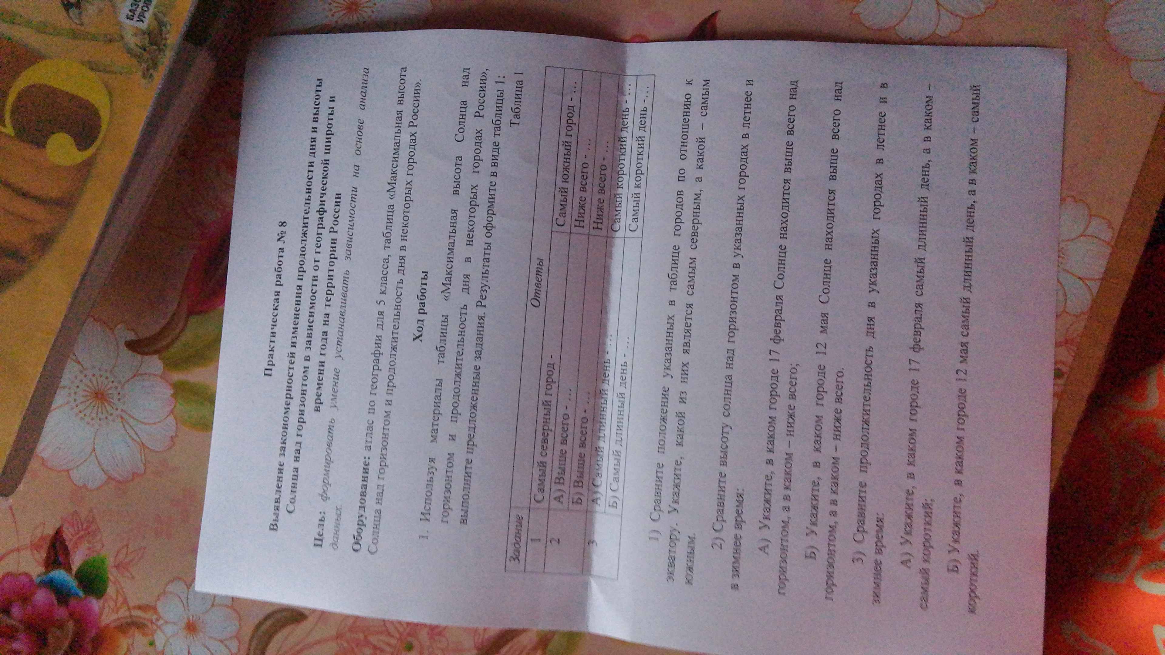 2) Укажите, в каком городе 12 мая Солнце находится выше всего над горизонтом, а в каком – ниже всего.
