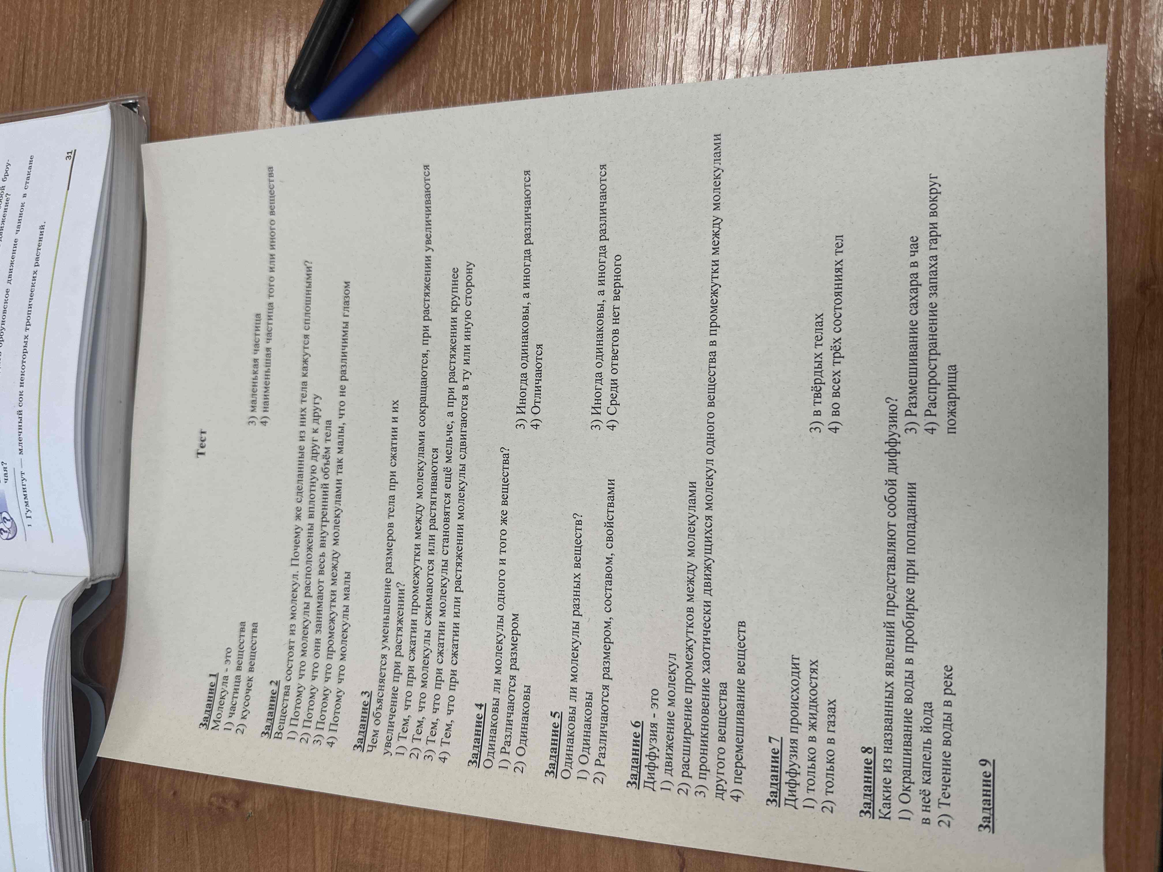 Вещества состоят из молекул. Сделанные из них тела кажутся сплошными, 3) Потому что промежутки между молекулами так малы, что не различимы глазом.