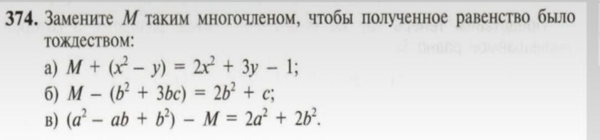 в) $$(a^2 - ab + b^2) - M = 2a^2 + 2b^2$$