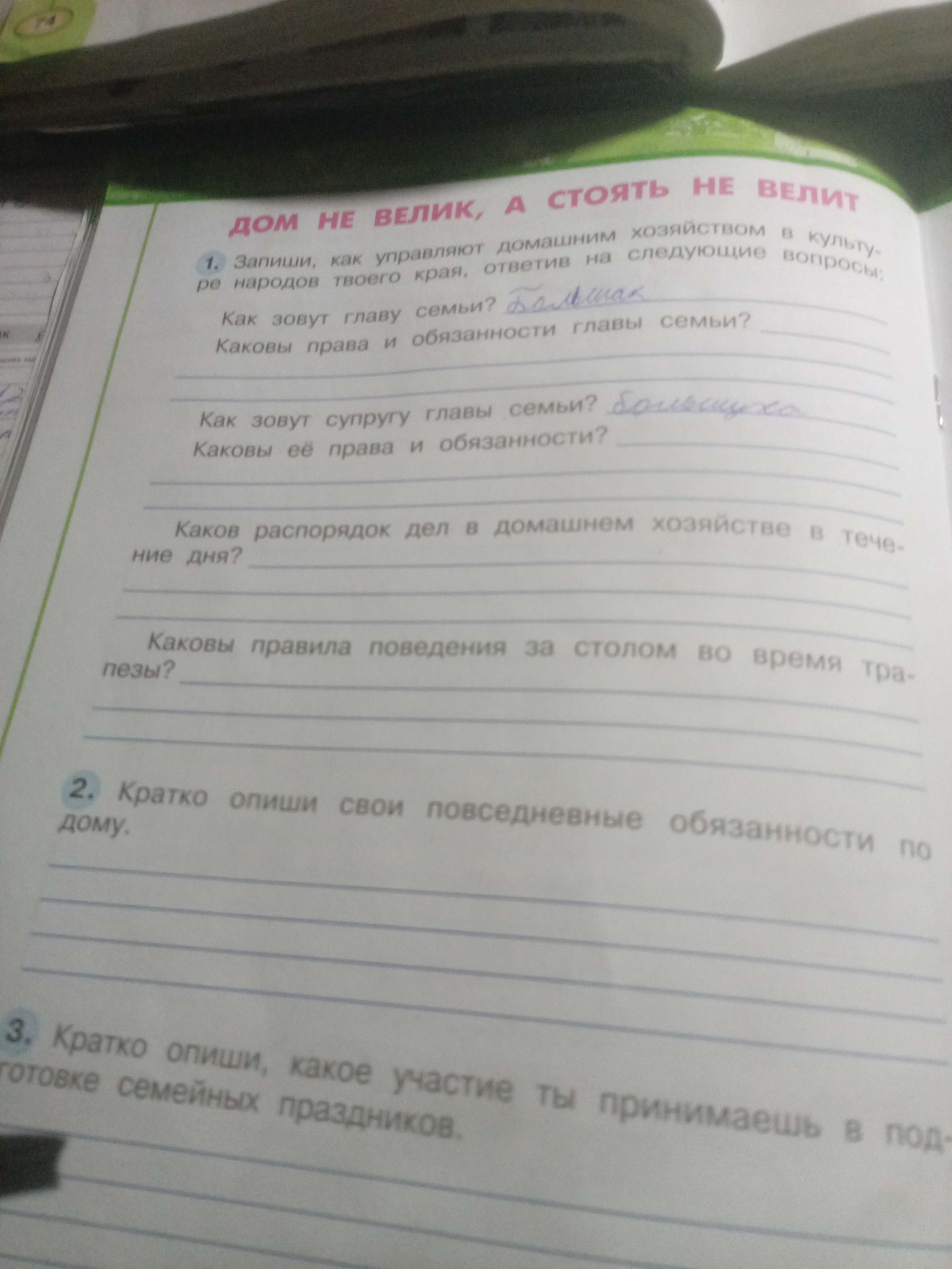 Контрольные задания > Запиши, как управляют домашним хозяйством в культуре народов твоего края, ответив на следующие вопросы: