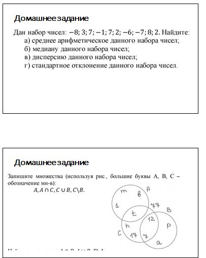 Запишите множества (используя рис., большие буквы А, В, С – обозначение мн-в):