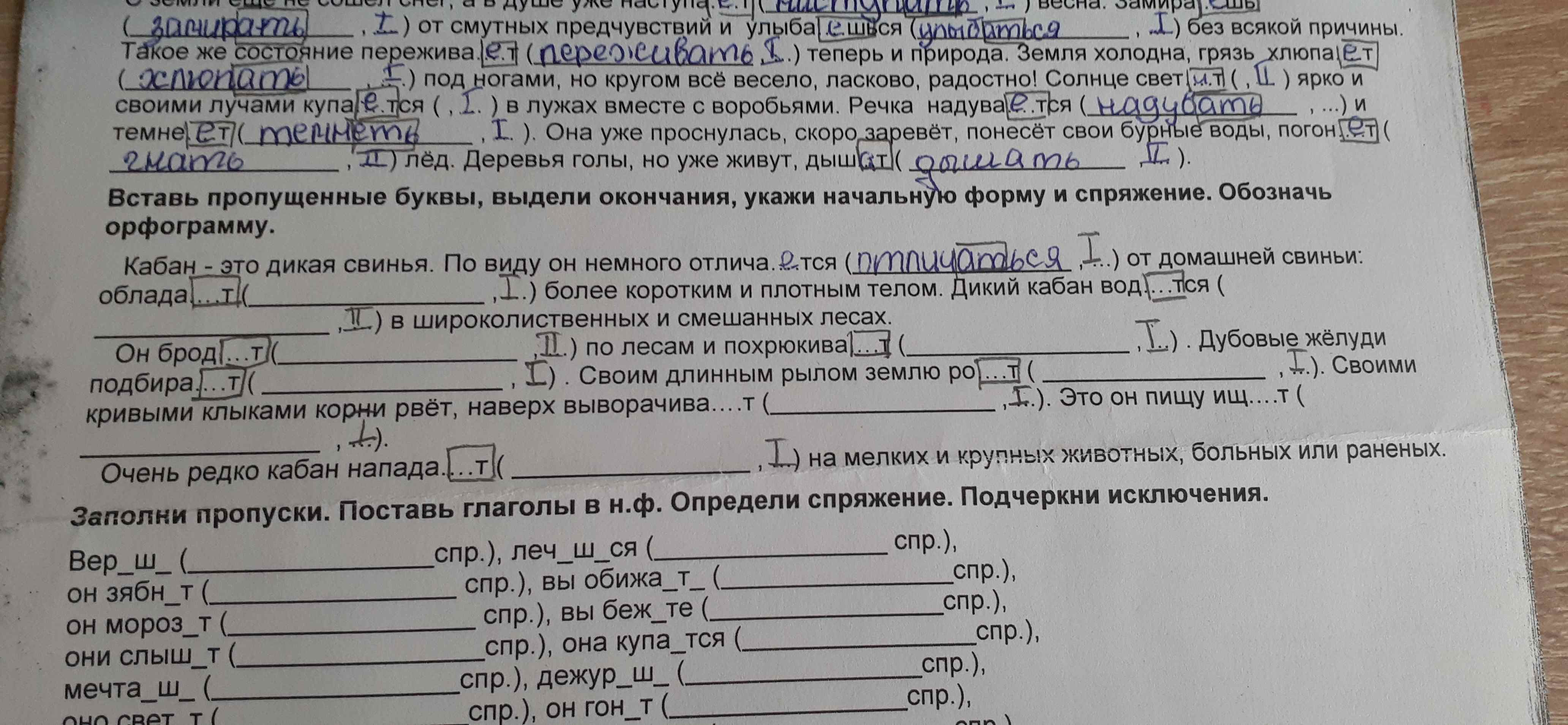 Вот заполненные пропуски с глаголами в начальной форме и определением спряжения (исключения подчёркнуты):
